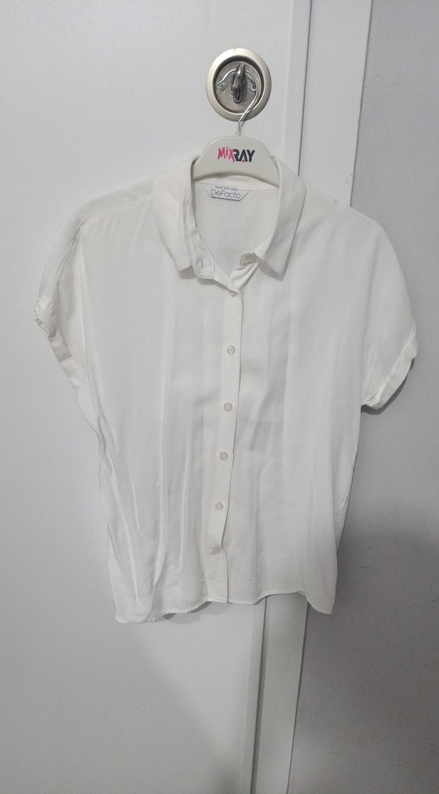 Beyaz keten gömlek, kısa kollu, düğmeli ve yakalıdır. Salaş kesimi ve midi boyuyla minimalist sokak stiline uygundur. Düz ve pastel tonludur.