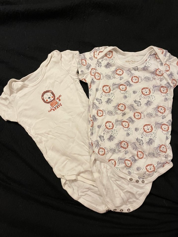 Yumuşak pamuklu ve bambu ipten, beyaz renkli iki adet kısa kollu erkek bebek body.