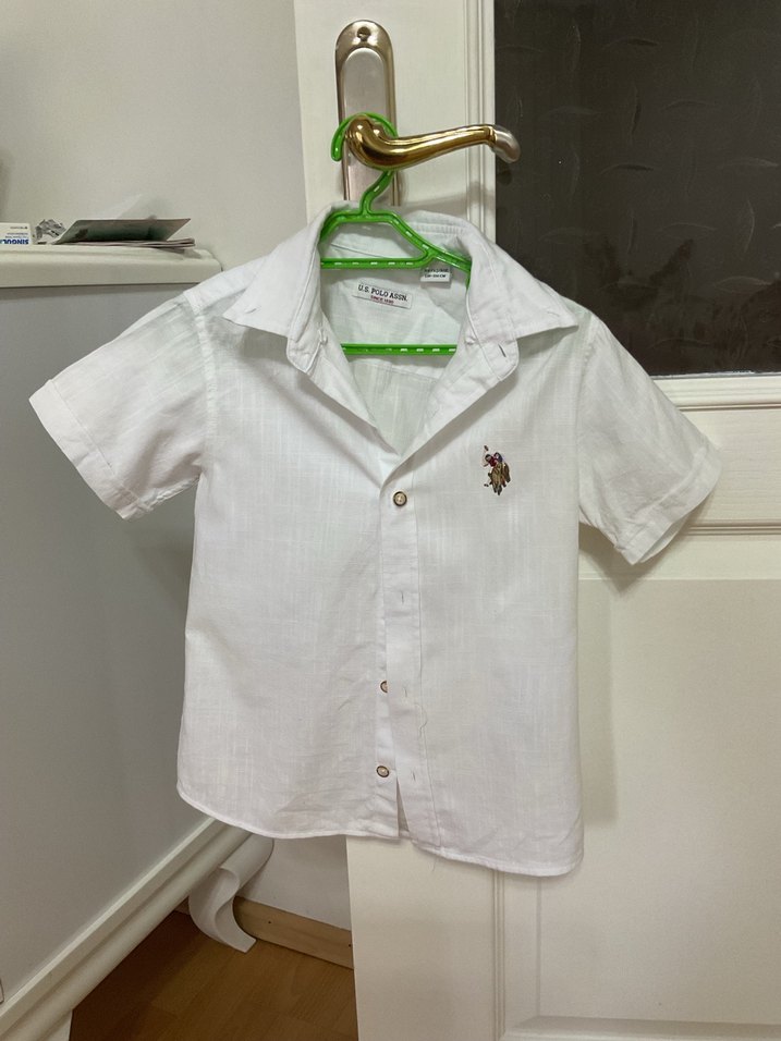 Beyaz renkli, pamuklu keten kumaş kısa kollu, düğmeli ve yakalı erkek gömleği. Rahat kesimiyle sokak tarzına uygun.