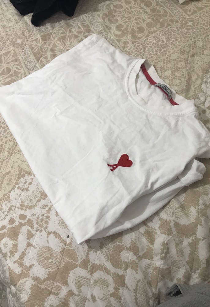 Yumuşak pamuk kumaştan, beyaz kısa kollu hamile tişörtü. Salaş kesim ve yuvarlak yaka, küçük kırmızı baskı ile günlük kullanıma uygun rahat stil.