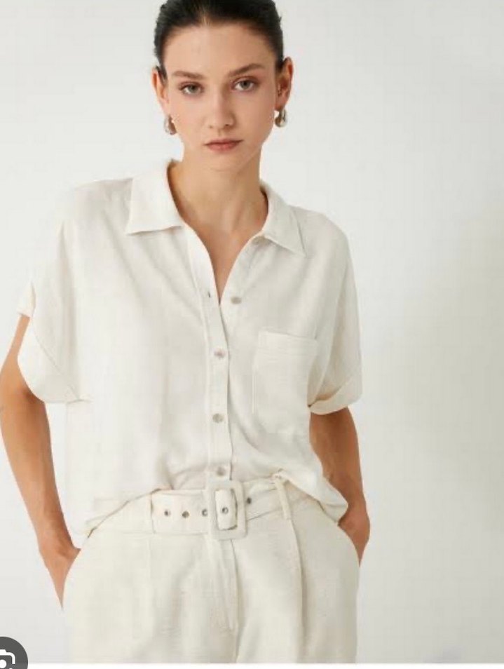 Beyaz kısa kollu, yakalı ve rahat kesime sahip günlük kullanıma uygun gömlek. Temiz
