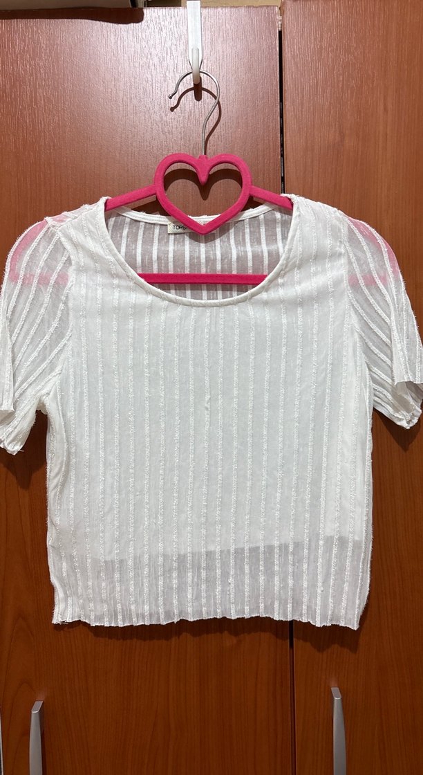 Beyaz, kısa kollu, yuvarlak yakalı, vücuda oturan ve pliseli detaylara sahip kadın bluz, gündelik sokak stili için uygundur. Sırt kısmı transparandır.