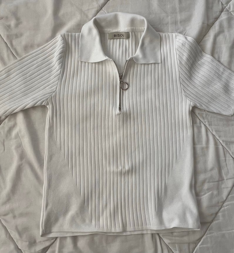 s-m uyumlu yeni gibi. Beyaz, kısa kollu, yakalı ve düğmeli polo tişört. İnce kesimli, triko kumaştan, desensiz ve sokak stiline uygun.