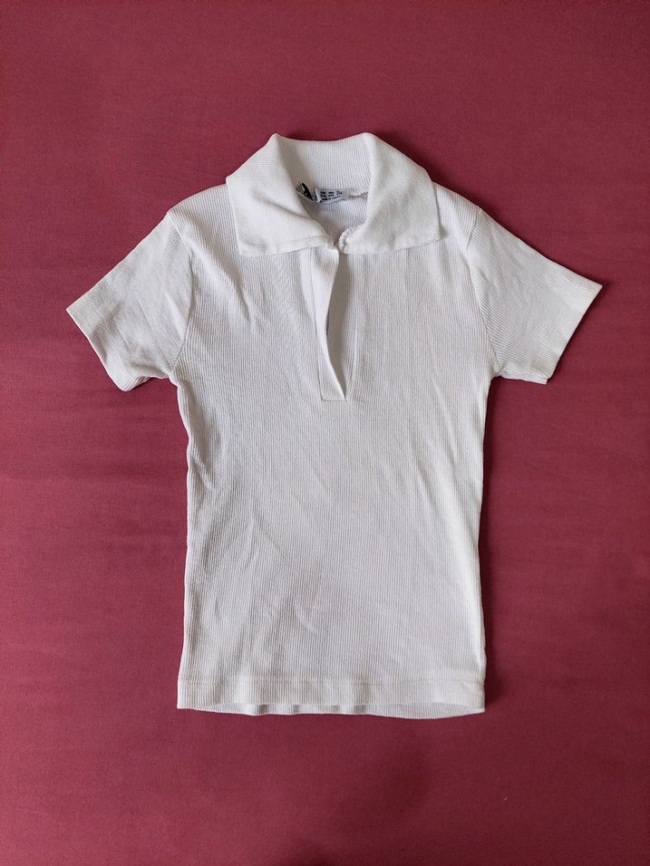 pamuklu, yakalı ve kısa kollu, sade ve şık beyaz polo tişört. Street wear tarzına uygun, vücuda oturan kesim.