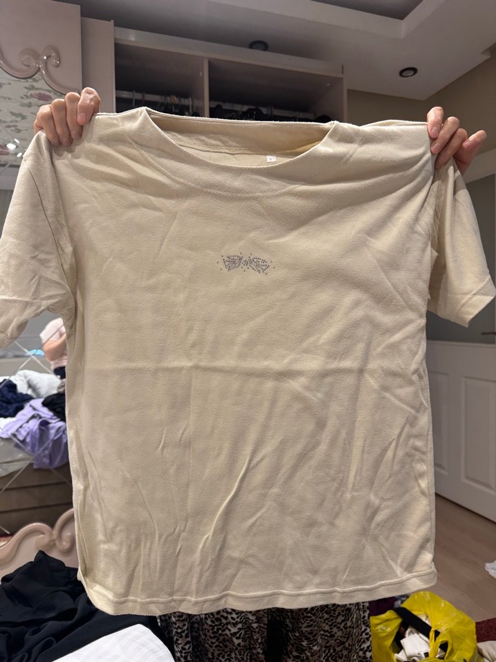Beyaz renkli, kısa kollu ve yuvarlak yaka tişört. Hafif baskılı, rahat kesimli ve yumuşak keten kumaştan üretilmiştir. Günlük kullanıma uygundur.