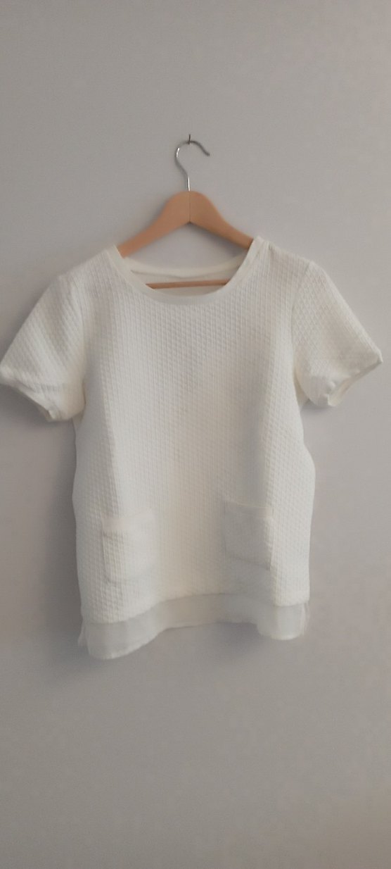 Beyaz renkte, kısa kollu ve yuvarlak yakalı viskoz kumaştan yapılmış, rahat kesime sahip midi uzunluğunda sade bluz. Günlük kullanıma uygun, zahmetsiz şıklık sunar.