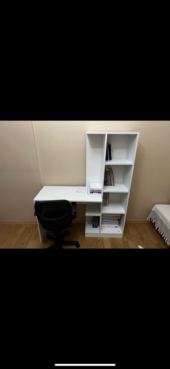 Beyaz Kitaplıklı Çalışma Masası