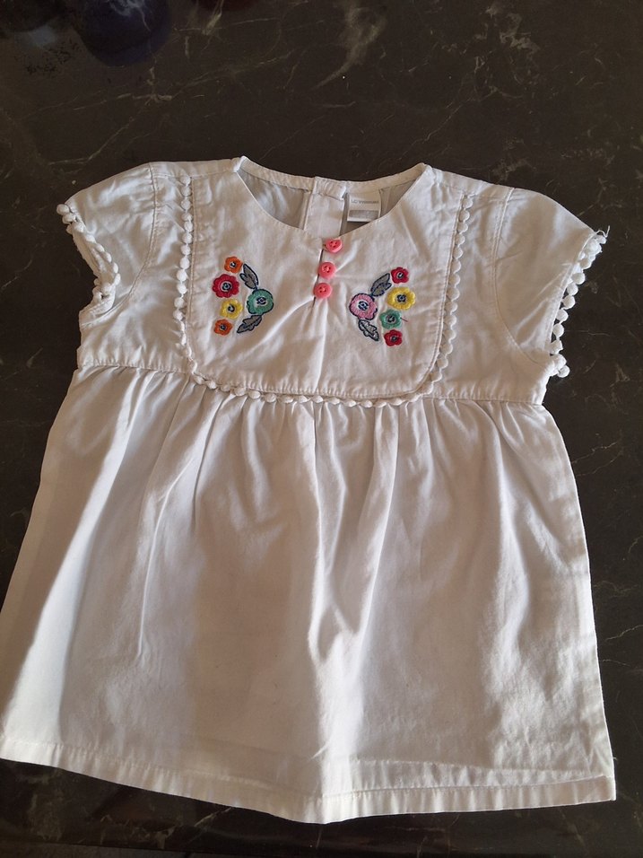 Beyaz önü işlemeli.arkası dügmeli kız bebek elbisesi