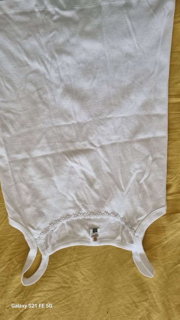 İnce askılı, yakasında ince dantel detaylı beyaz kız çocuk atleti. Günlük kullanım için yumuşak ve rahat kumaş.