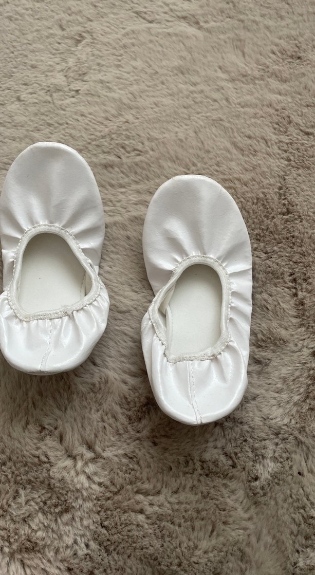 Yumuşak kauçuk malzemeden yapılmış, düz ve desensiz beyaz kız çocuk babetleri.