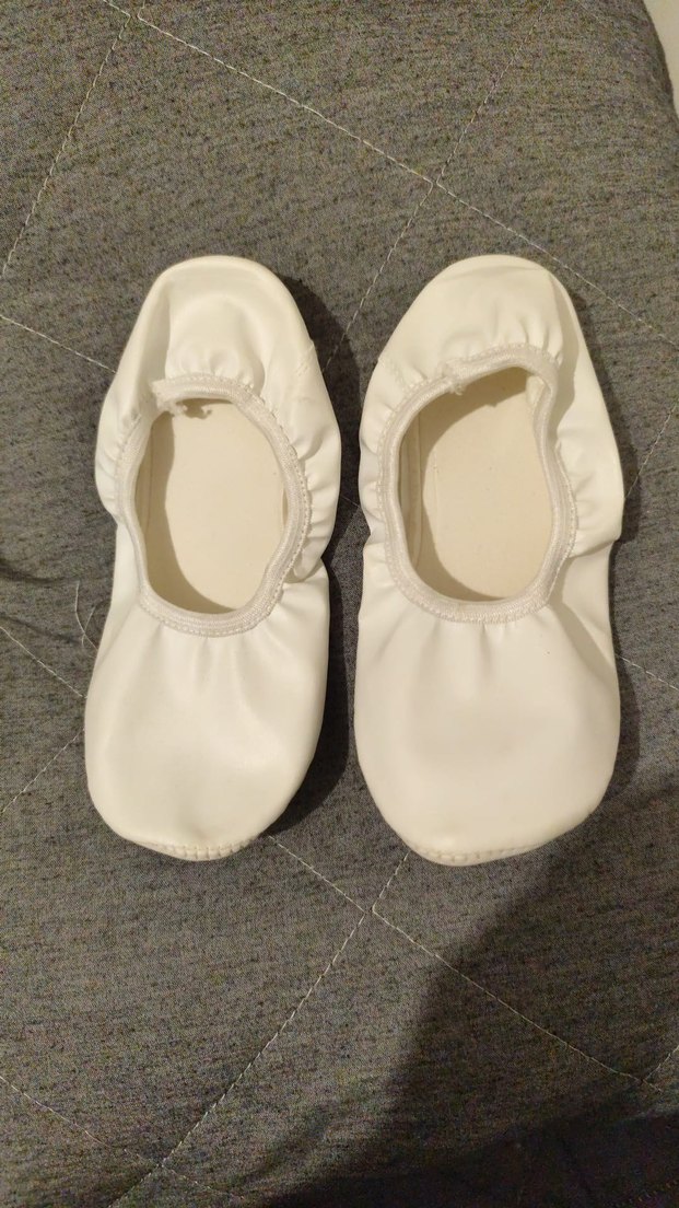 Düz beyaz kız çocuk bale ayakkabısı, yumuşak ve esnek tabanlı, desensiz sade tasarıma sahiptir. Geleneksel stile sahiptir.