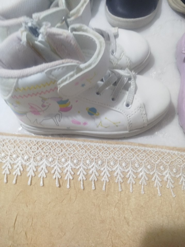 Beyaz, pastel baskılı detaylara sahip kız çocuk spor ayakkabısı. Kauçuk tabanlı ve kolay giyim için cırt cırtlıdır. Trend sokak stili için uygundur.
