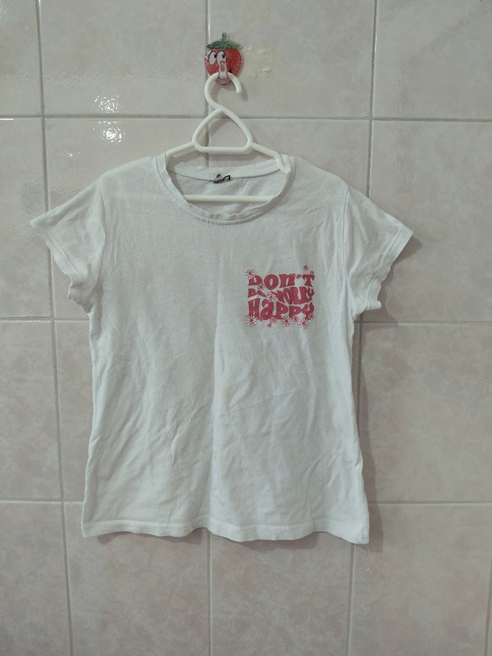 Pamuk kumaştan, kısa kollu ve yuvarlak yakalı beyaz kız çocuk tişörtü. Kırmızı baskılı deseniyle rahat ve şık bir sokak stili sunar.