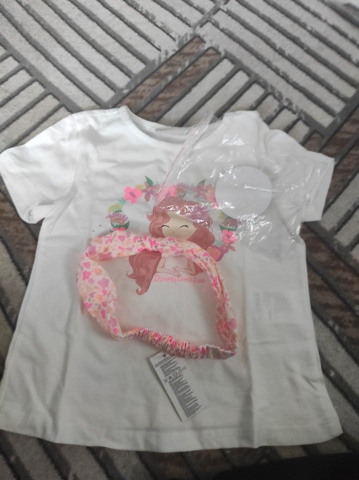 Beyaz Kız Çocuk Baskılı Kısa Kollu Tişört bandajli