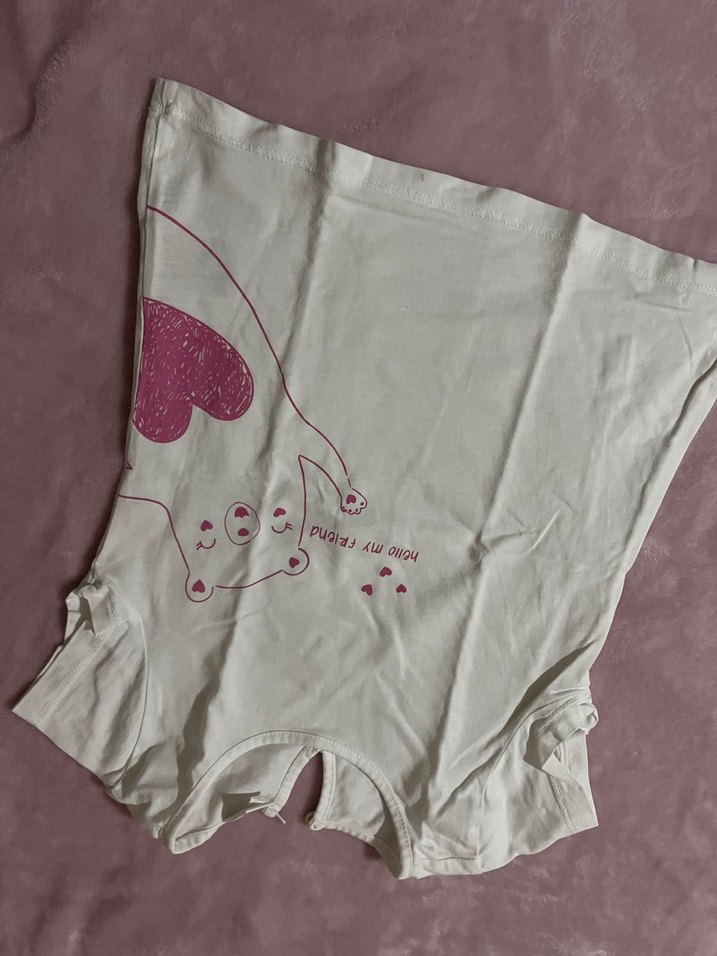 Pamuklu, beyaz renkli, bisiklet yakalı ve fırfırlı detaylı, baskılı kız çocuk kısa kollu tişört. Sokak stiline uygun, fitted kesim.