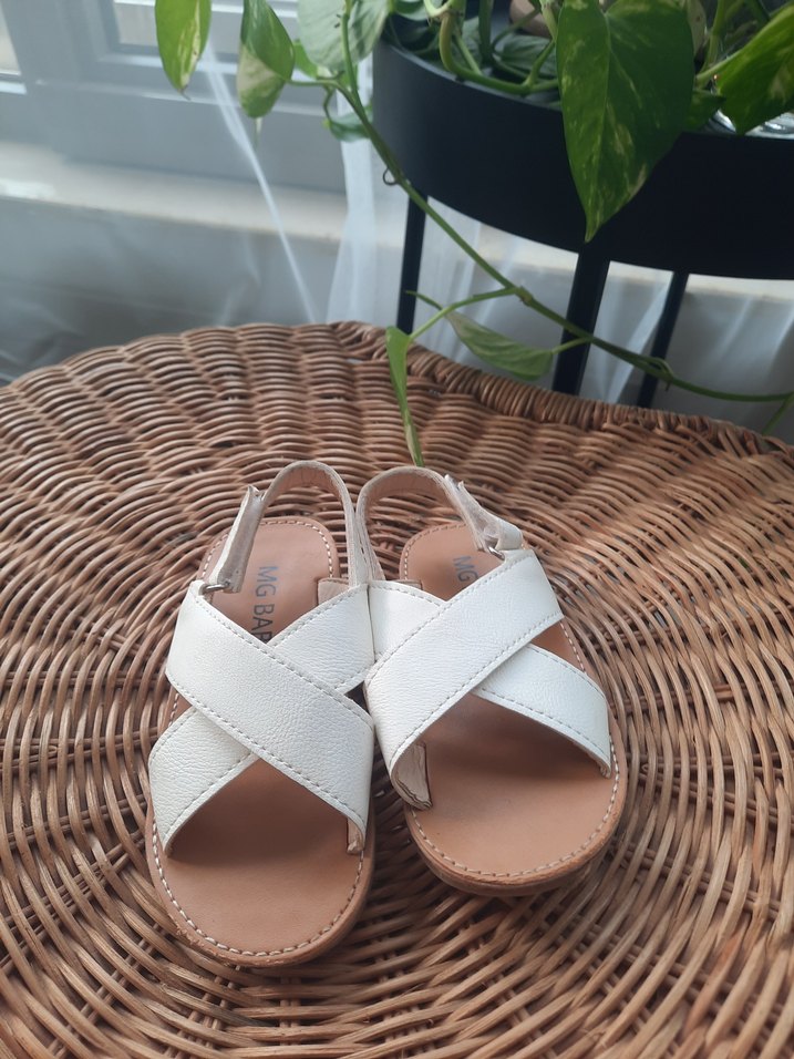 Beyaz renkli, sade ve bohem tarzda kız çocuk sandaletleri. Rahat ve dayanıklı kauçuk malzemeden yapılmıştır, ayarlanabilir bantlara sahiptir. alınıp kullanilmayanlardan