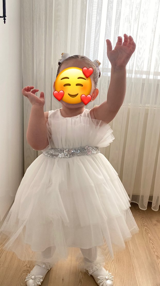Beyaz, fırfırlı detaylı, askılı yaka ve nakış desenli kız çocuk abiye elbise. Parlak kemer detayı ile trend bir görünüm sunar. 1 kez düğünde giyildi özel dikimdir detaylı fotoğraf gönderirim 2-4 yaş arasına olur