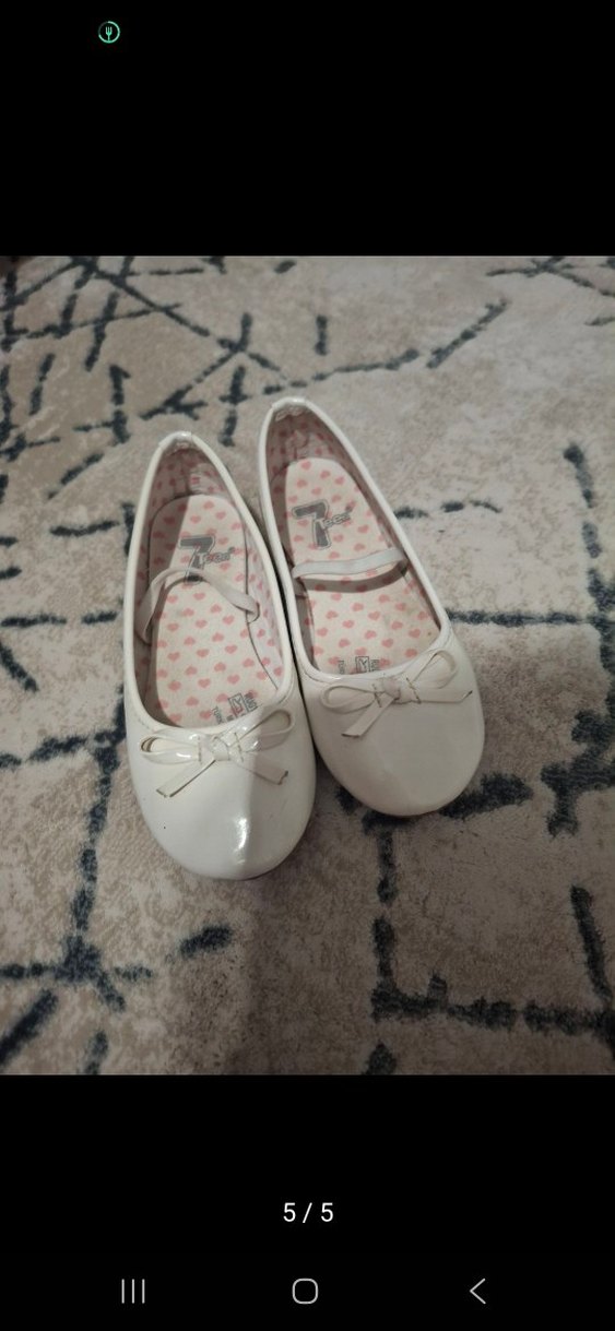 Beyaz renkli, klasik fiyonklu kız çocuk babetleri. Yumuşak kauçuk malzeme ve içi pastel kalp desenli, günlük kullanım için uygun.