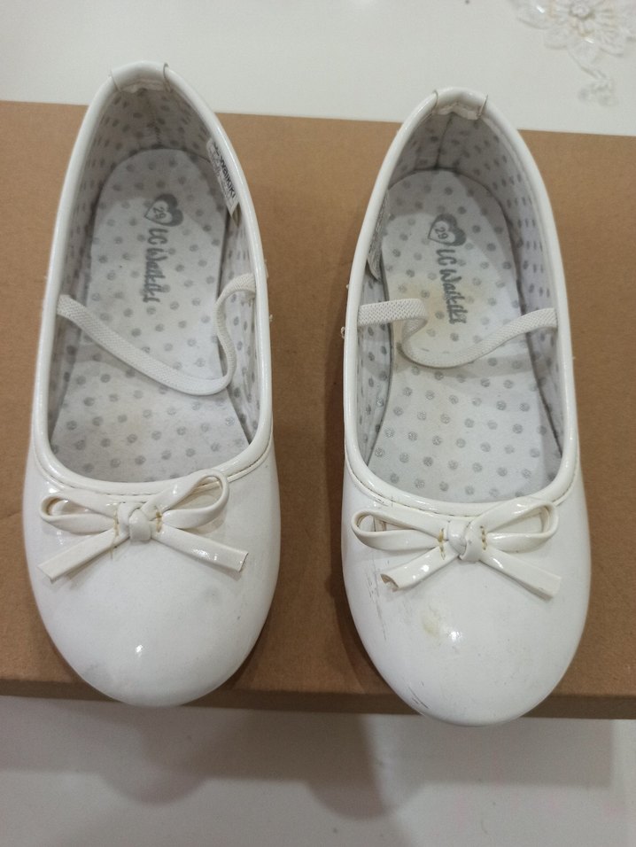 Beyaz renkte, fiyonklu ve yumuşak kauçuk tabanlı kız çocuk babet ayakkabı. Desensiz, klasik tarzda ve pastel tonlarda. TERTEMİZ