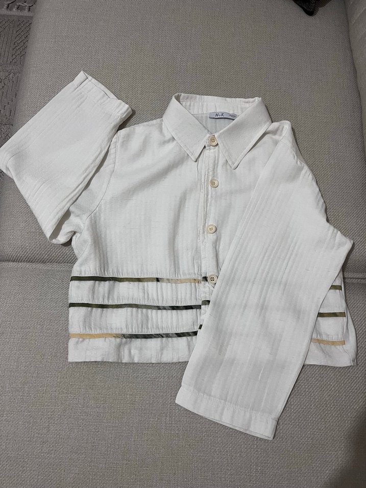 Beyaz kız Çocuk Keten Gömlek