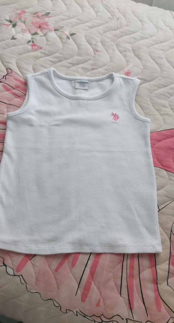 Beyaz renkli, kolsuz çocuk atleti, yumuşak dokulu ve göğüste küçük pembe logo detayı bulunur.
