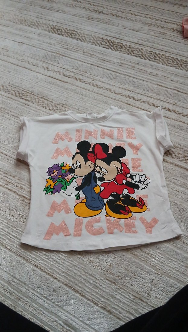 Beyaz Kız Çocuk Minnie Mickey Baskılı Tişört