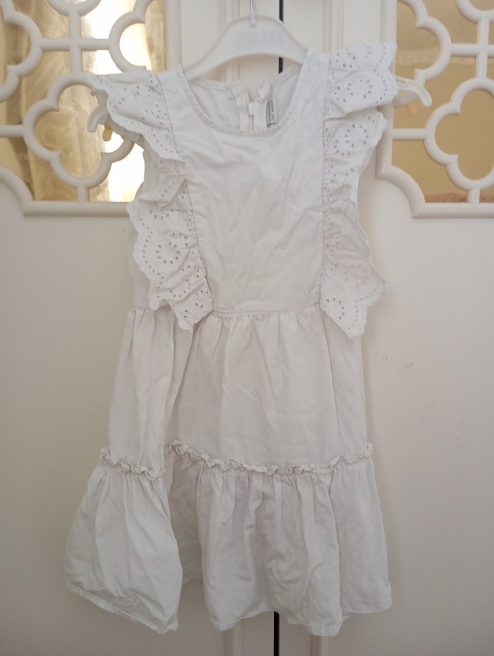 Beyaz Kız Çocuk Nakışlı Pamuklu Elbise
