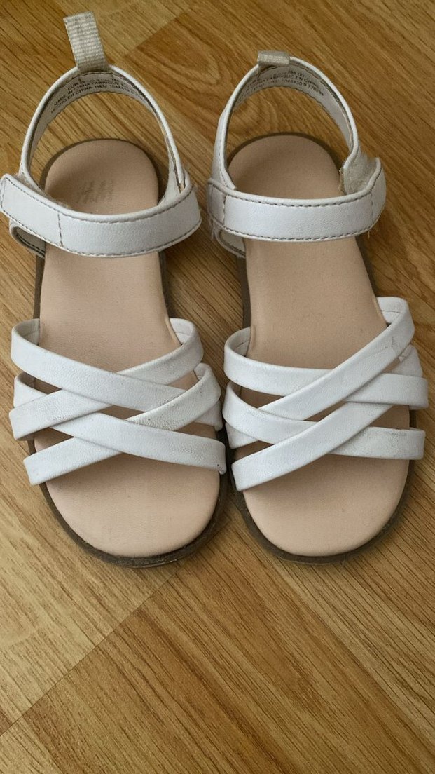 Beyaz renkli, tokalı kayışlara sahip kız çocuk sandaletleri, kauçuk malzemeden yapılmıştır. Düz ve modern tasarıma sahiptir.