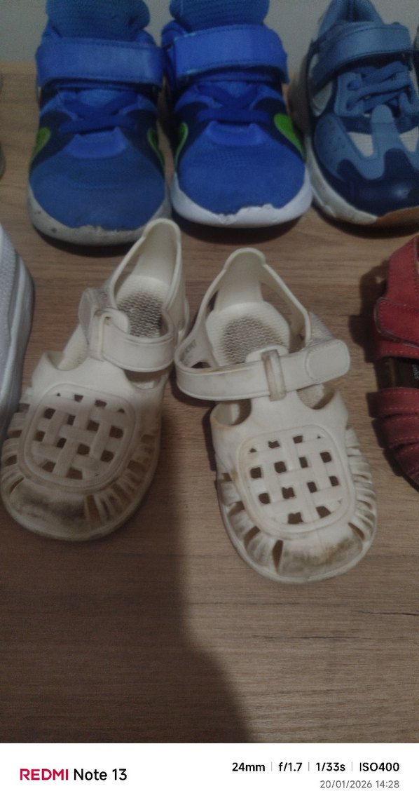 Beyaz renkli, tokalı kayışlı kız çocukları için kauçuk sandaletler. Havalandırmalı klasik tasarıma sahiptir. yıkanması gerek sadece