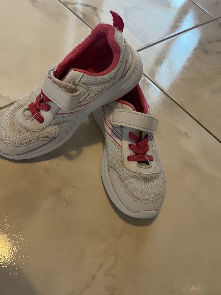 Lcw bantlı, beyaz renkli kız çocuk spor ayakkabısı. Açık pembe detaylı, kauçuk tabanlı ve desen içermeyen rahat model.