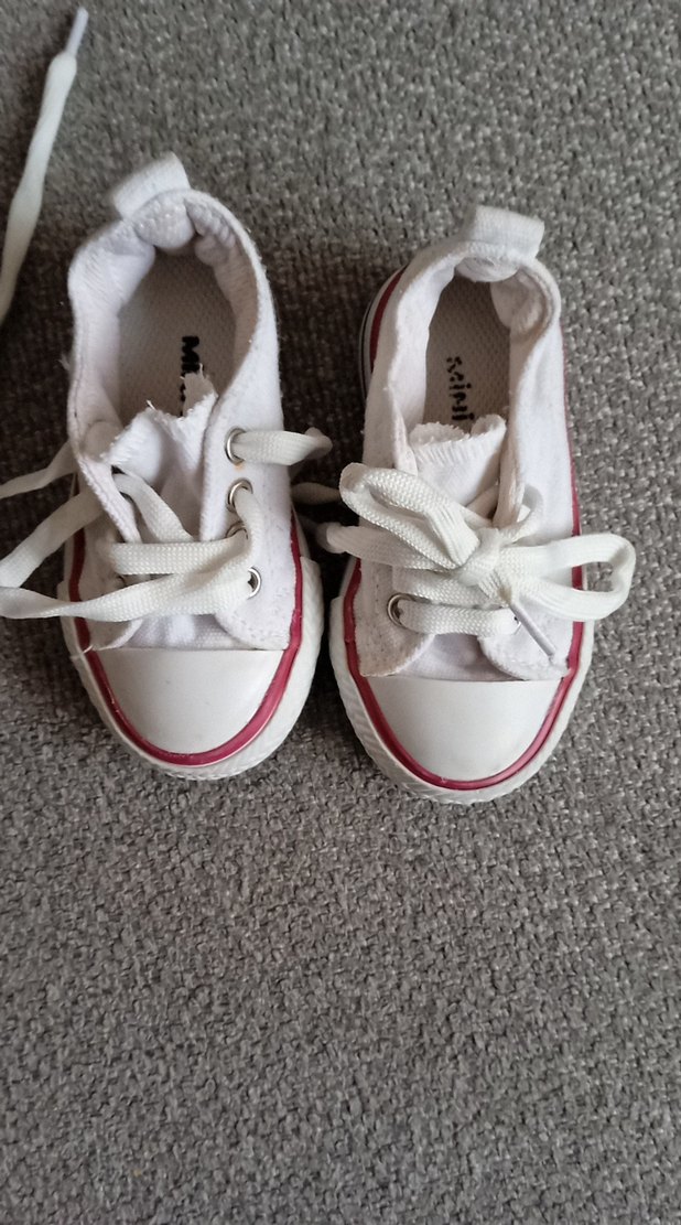 Beyaz kız çocuk spor ayakkabısı, lastikli ve kauçuk tabanlı, düz desensiz ve karşı kültür tarzında.