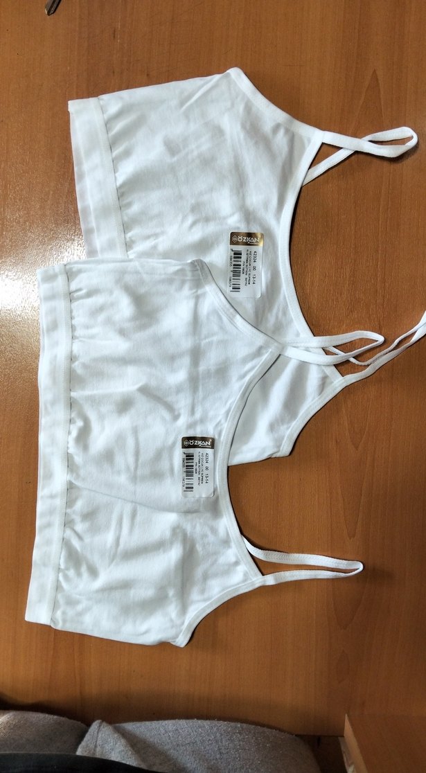 Yumuşak ve esnek kumaştan yapılmış, 13-14 yaş kız çocukları için beyaz antrenman sütyeni. Rahat kullanım sağlar. Süngersizdir. Hiç kullanılmadı.