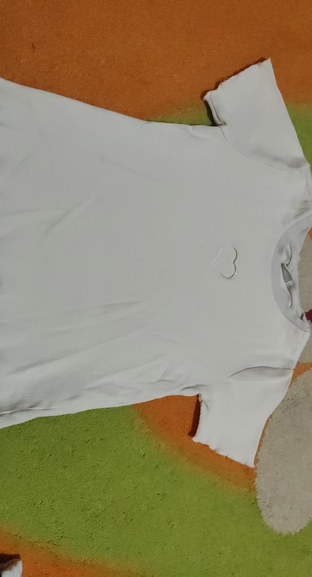 Ön kısmında küçük kalp detayı bulunan beyaz kız çocuk tişörtü, yumuşak kumaştan yapılmıştır. Günlük kullanım için rahat.