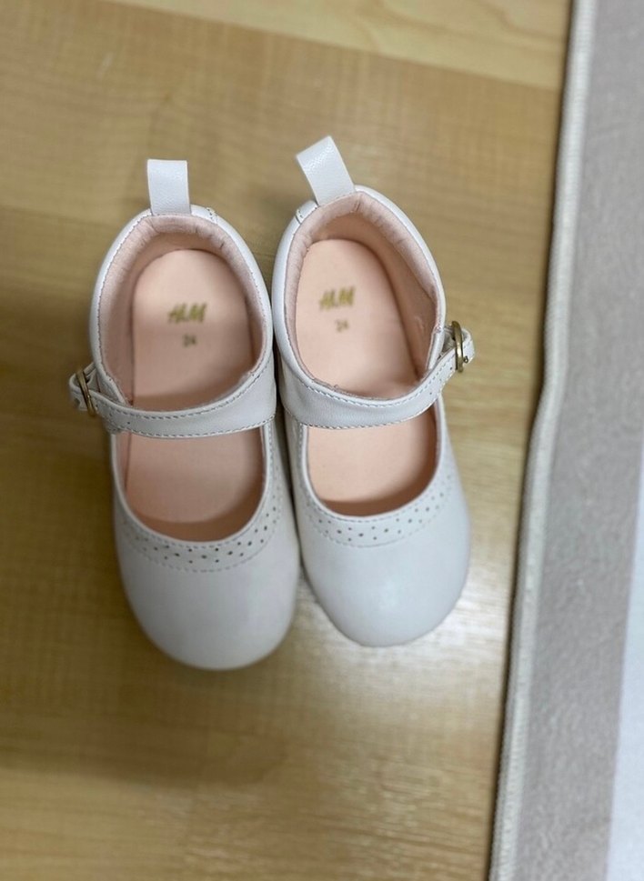 Beyaz, tokalı bantlı kız çocuk babet ayakkabısı. Düz, pastel renkte, modern klasik tarzda ve kauçuk malzemeden üretilmiştir. 1 kere giyildi.