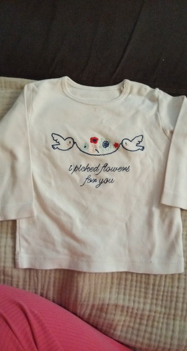 Beyaz renkli kız çocuk uzun kollu tişört, yuvarlak yaka ve düğmeli kapanışa sahiptir. Pamuklu, baskılı çiçek ve kuş desenli, pastel tonlarda ve regular fit.