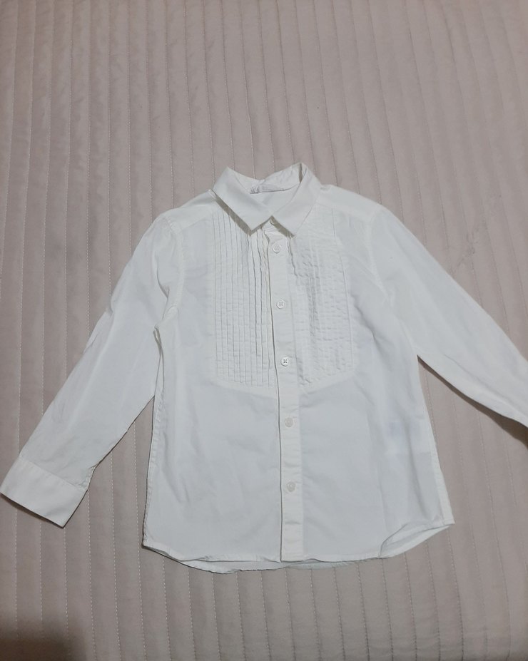 Pamuklu beyaz, uzun kollu, düğmeli ve yakalı kız çocuk gömleği. Modern klasik tarzda, sade ve regular fit kesim. sıfırdan farksız sadece bir kez giyildi, kesinlikle hiç bir sorunu yok gönül rahatlığıyla alabilirsiniz, %100 pamuk, yumuşacık kumaşı biraz esnektir
