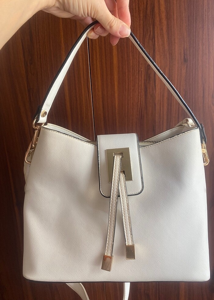 Beyaz klasik omuz çantası sıfır ayarında