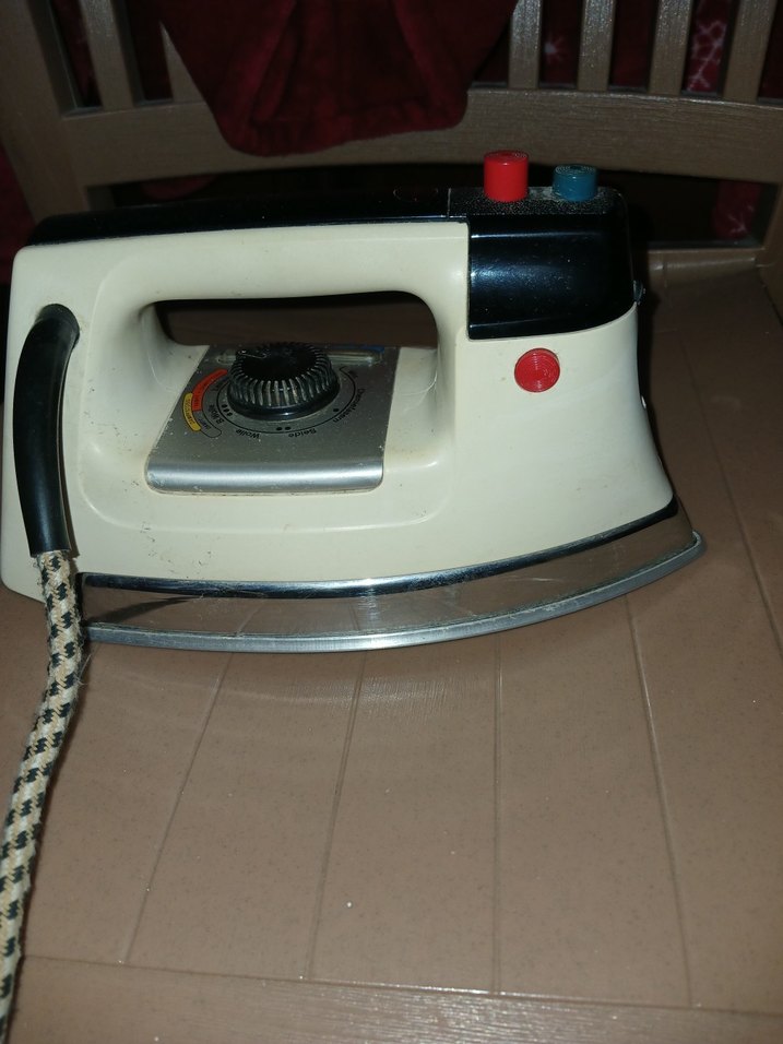 Beyaz klasik ütü, sıcaklık ayar düğmesi ve kumaş kaplı kablo ile güvenli kullanım sağlar. Üstte kırmızı ve mavi düğmeler bulunur. ⚙️ Rowenta uzun uzun yıllardır kullanılmıyor dolapta bekliyordu ütü yaparken suyu sızdırıyor kumaşın üstüne Ben bunu hem antika hem de parça niyetine sokuyorum isteyen yaptırıp kullanır ağır ağır bir ütü