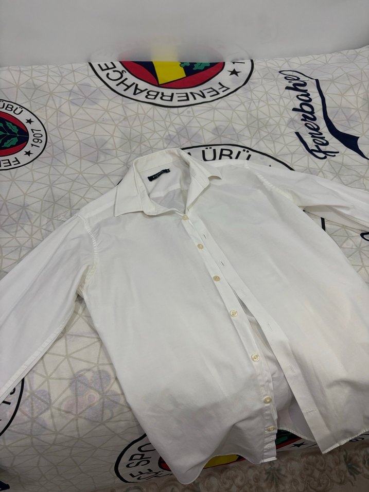 Beyaz, uzun kollu keten gömlek, yakalı ve düğmeli ön detaylıdır. Regular fit kesimiyle günlük ve iş stiline uygundur. ✨