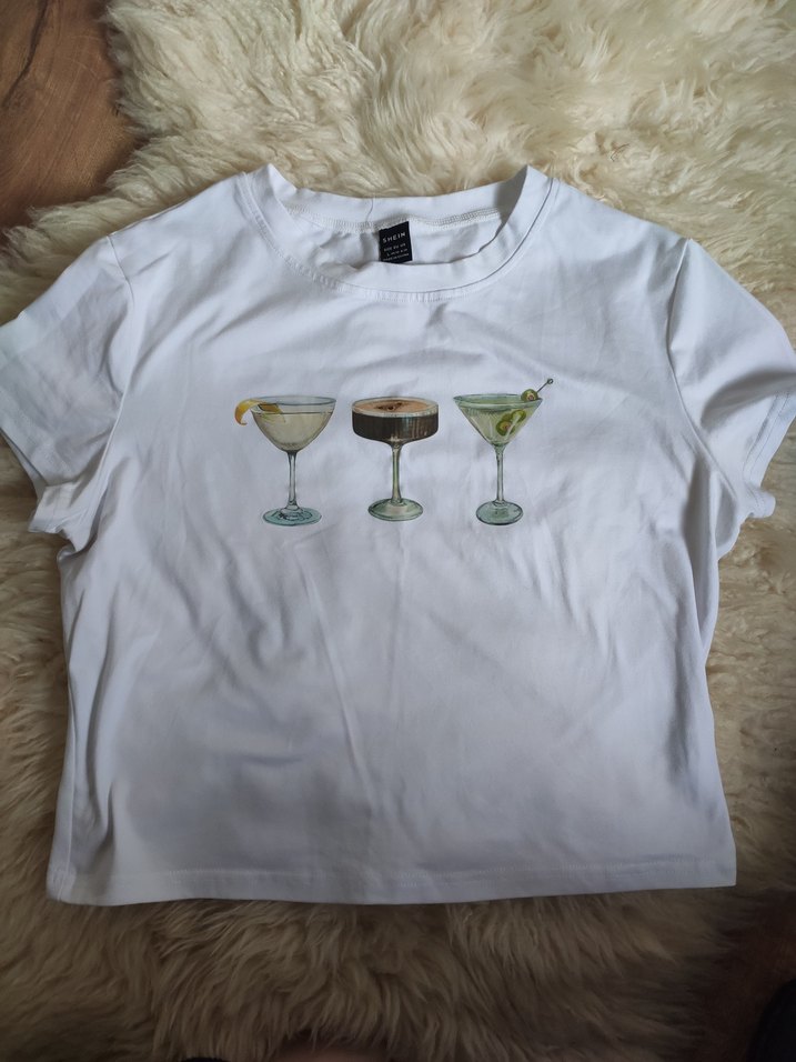 Beyaz Kokteyl Baskılı Kadın Tişört