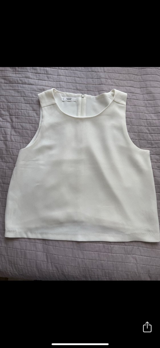 Beyaz kolsuz kadın bluz, yuvarlak yaka ve bol kesimle sade ve rahat bir stil sunar. Günlük kullanım için uygundur.