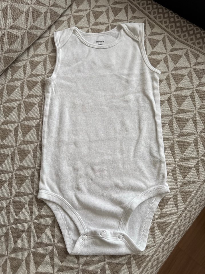 Beyaz kolsuz bebek body, yuvarlak yaka ve alt kısmında kolay bez değiştirme için çıtçıtlı. Yumuşak ve rahat kumaş. Carter’s 24 ay Bebek Bady Tanesi 250 tl dir 9 adet mevcuttur. İlan açtırınız.