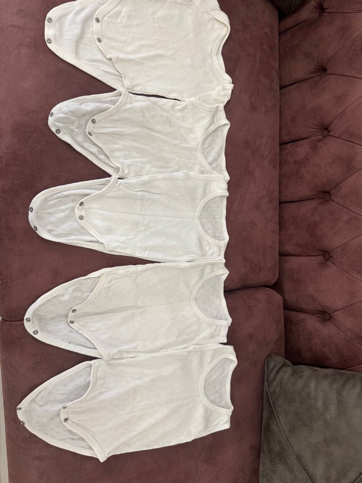 Jakarlı cıtcıtlı bası zıbın 4adet jakarlı kolsuz bir adet kısa kol normal 0-3 ay ve6 ay galiba etiketleri yok 3adet 0-3 ay 2 si 3-6 ay diye düşünüyorum