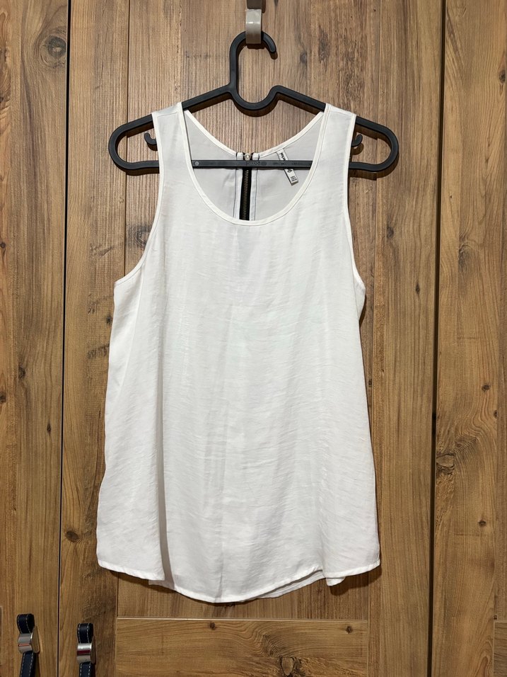 Beyaz Kolsuz Keten Basic Bluz