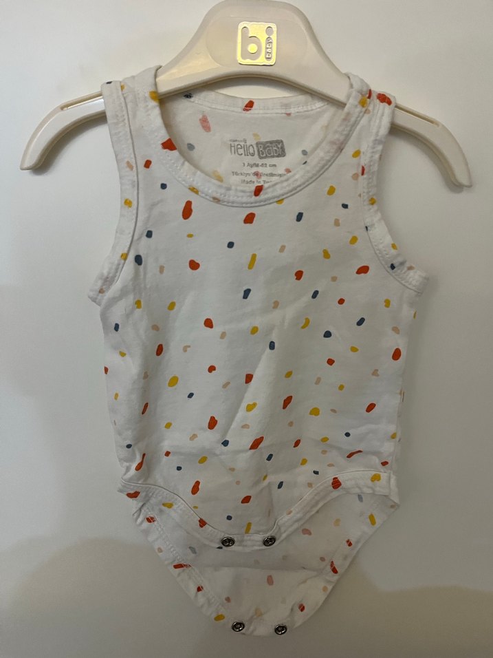 Yumuşak pamuklu kumaş üzerinde hafif batik desenli, kolsuz, bisiklet yaka bebek body, sokak tarzı için uygun.