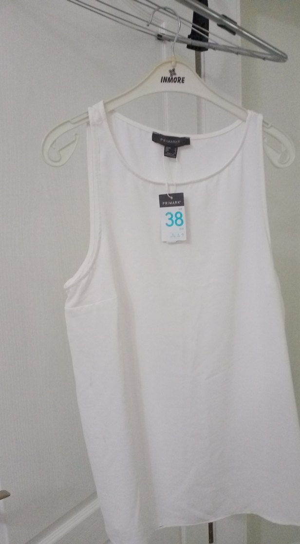 Pamuklu kumaştan, beyaz kolsuz, yuvarlak yakalı ve bol kesim kadın bluz. Günlük kullanıma uygun, rahat ve sade tarzda. Beden 38.