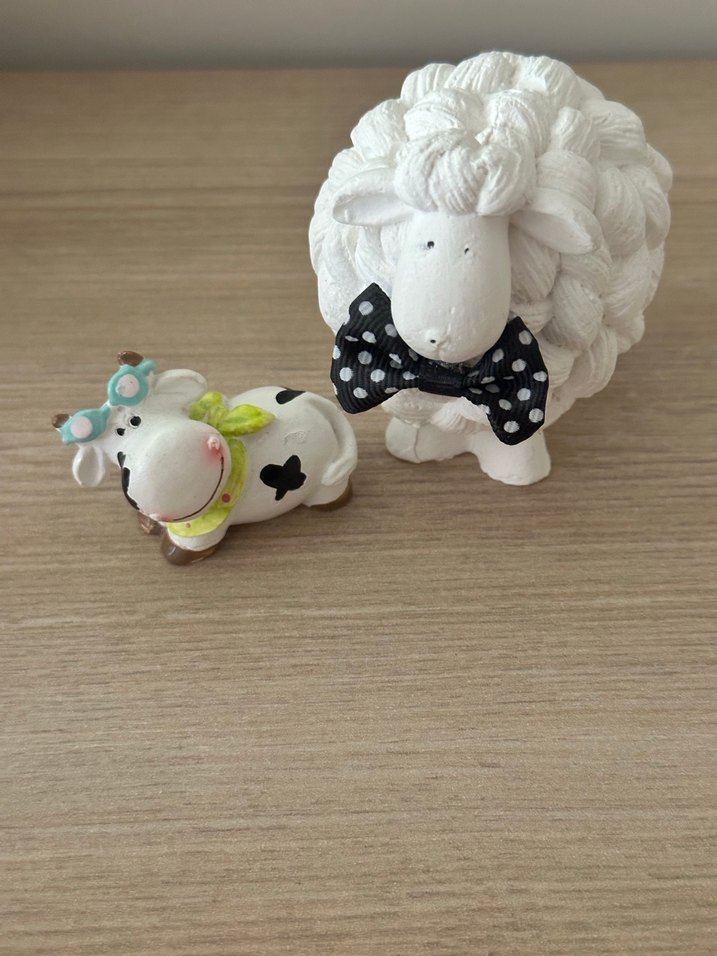 Beyaz Koyun ve İnek Biblo Seti