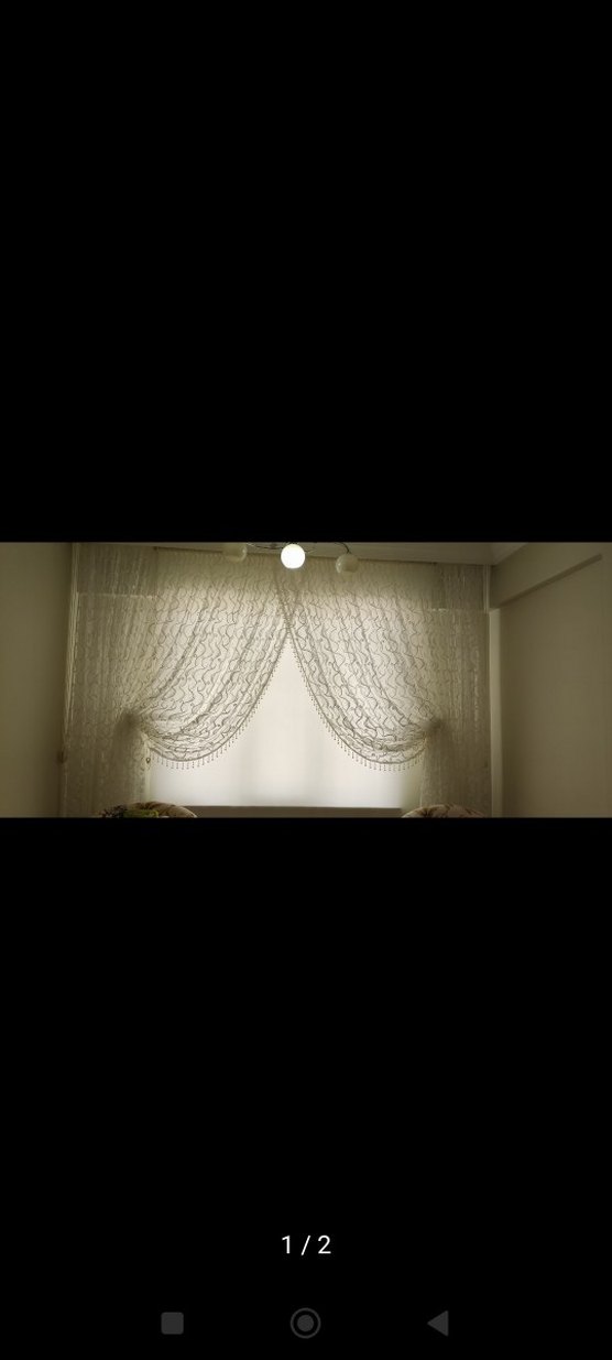 çok temiz ihtiyaç fazlası taşındığım eve uymadığı için satıyorum. en 3 metre, boy 2,5 metre. ipleri çıkarıldığında çok küçük bir deformesi var ama bağlı olduğunda hiçbir şey görünmüyor.