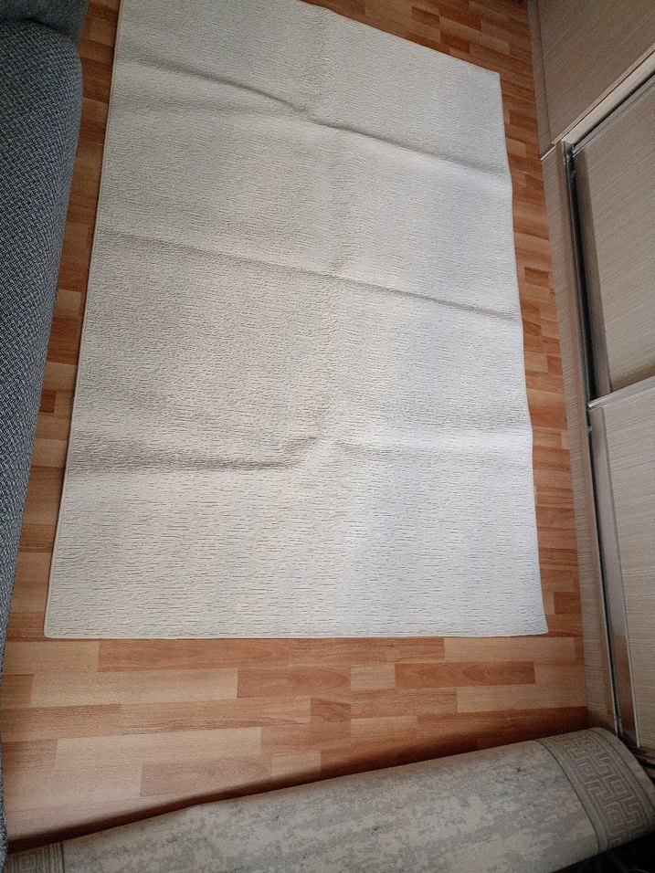 Modern tarzda, beyaz ve ktrm renklerde, yumuşak dokulu düz halı.ince halı boy 2 mtr en 1 33 cm