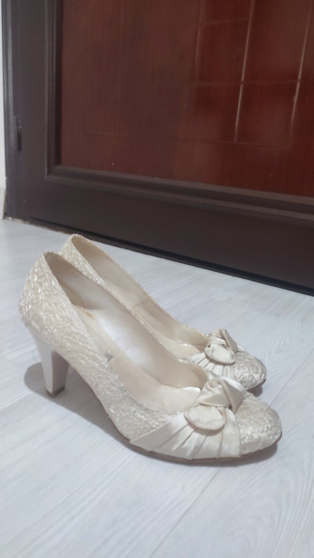 Beyaz Krem Topuklu Kadın Ayakkabı